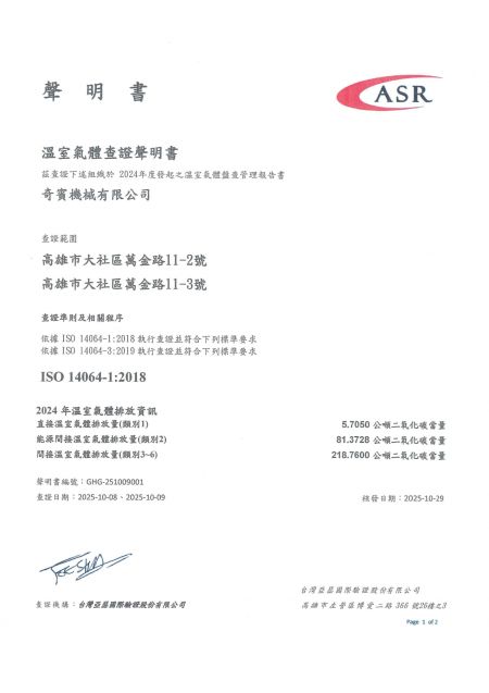 ◆ 2025通过且认证ISO 14064-1碳盘查。 |