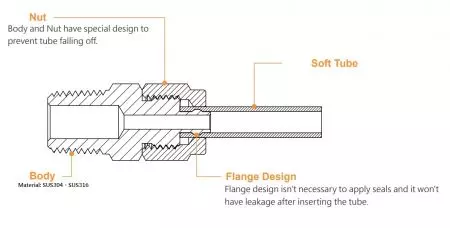 飞速隔板直由任本体是由304或316不锈钢制成。螺母则由303不锈钢制成。本体及螺帽经过精密设计,在螺帽锁紧时不会产生脱管及破管的情况,且软管安装或更换时,软管无须剪断即可重复安装。飞速类型可承受的压力受限于软管,实际上奇宾的飞速隔板直由任可承受比一般软管更大的工作压力。